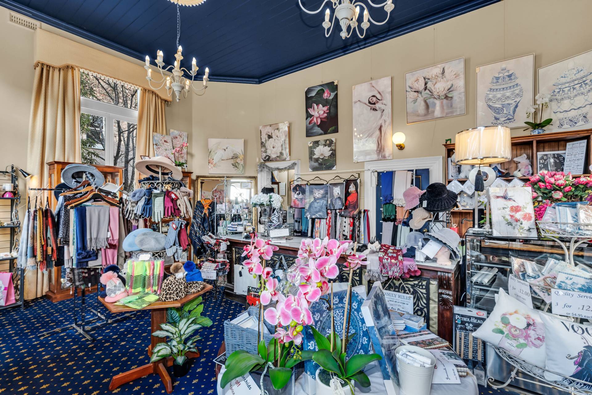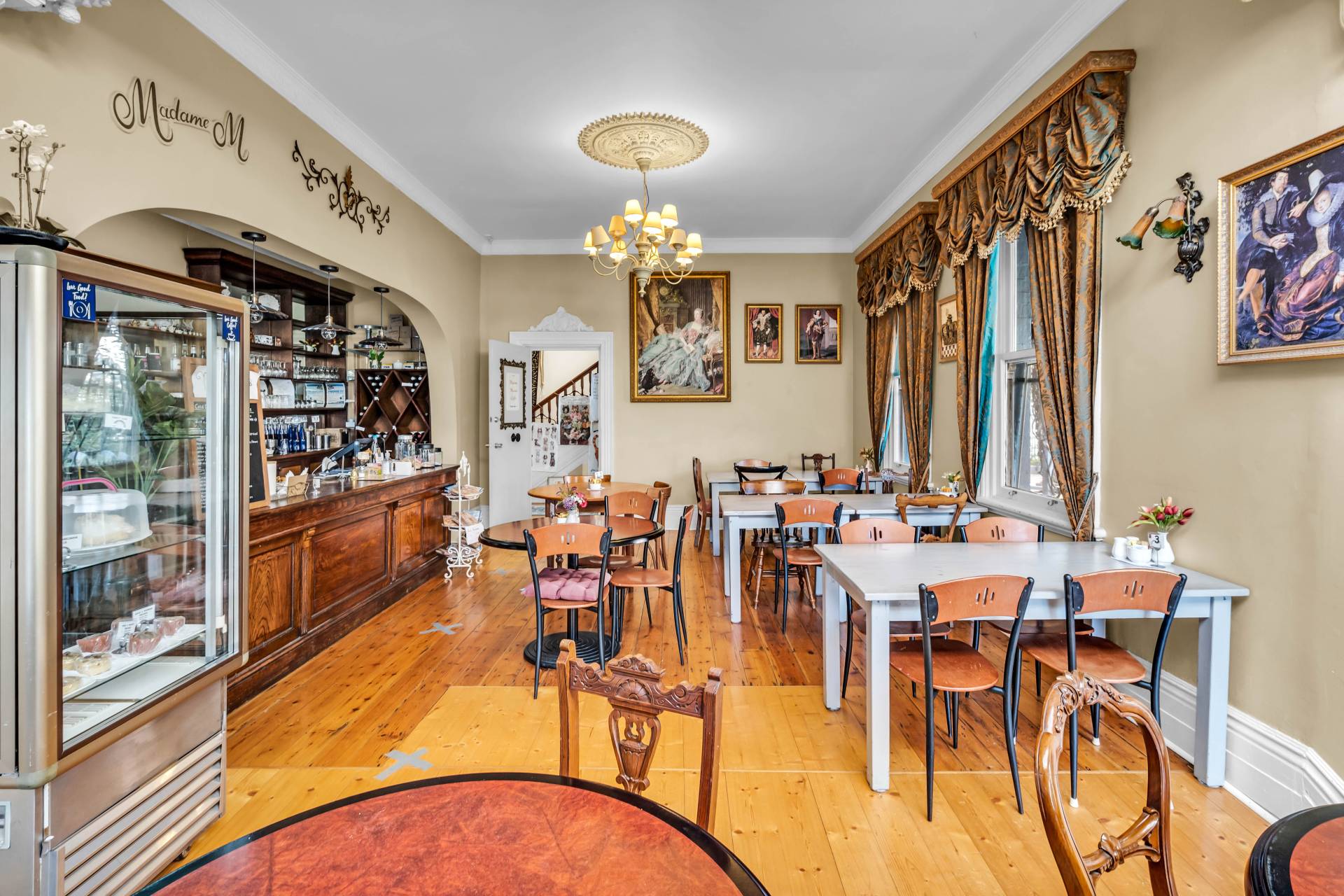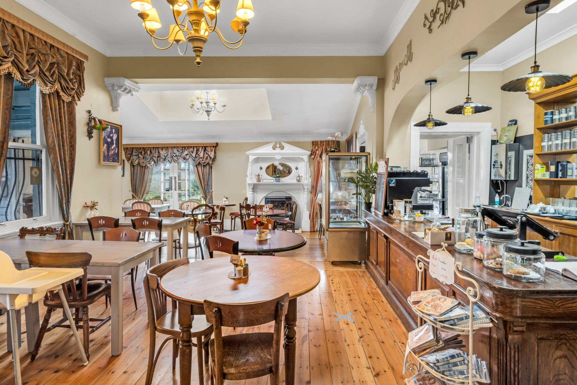 Prepare to be captivated by the epitome of timeless sophistication- Axminster Carpets in the gift shop, staircase and upstairs. Cafe has polished floorboards, quirky pictures on the wall and classic furniture setting, patrons are guaranteed delight by views of the garden, quality food and plenty of natural light.