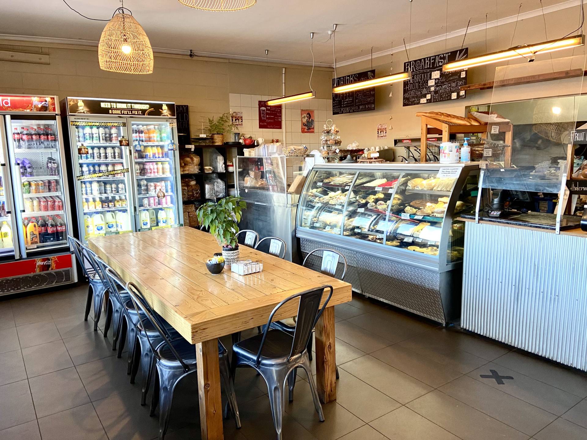 The bakery/cafe produces and offers a full range of pies, pasties, sausage rolls, quiches, burgers and breakfast, salad rolls and sandwiches, cakes, slices, bread rolls, hot and cold drinks and much more.