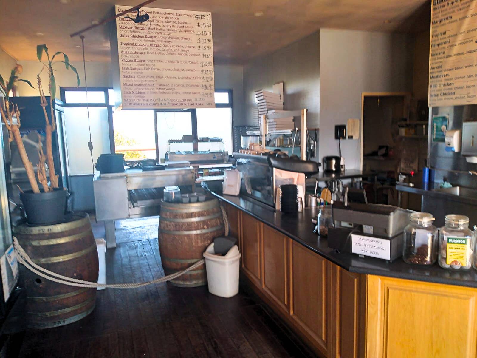 Modern premises, which seats 50 indoors and another 50 plus on the deck. There is a designated Takeaway food and restaurant area, separated by a well equipped commercial kitchen.