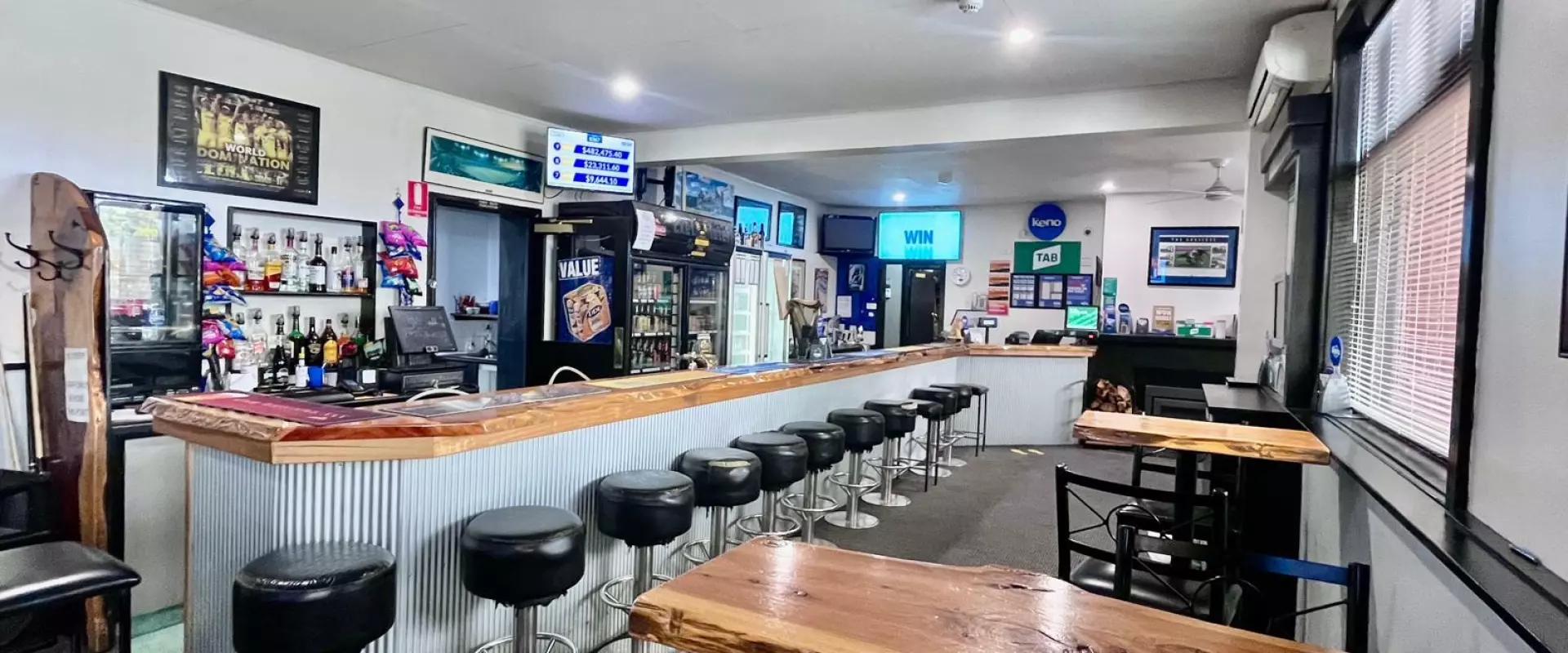 Income from food (kitchen currently closed), beverages and three forms of gaming, Tab, Keno and fifteen poker machines owned by the leasee.